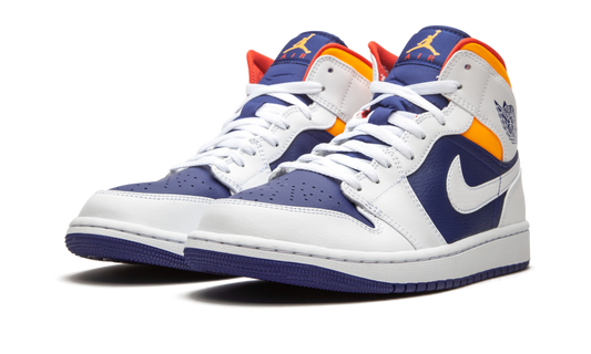 Jordan 1 Mid White Laser Orange Deep Royal Blue